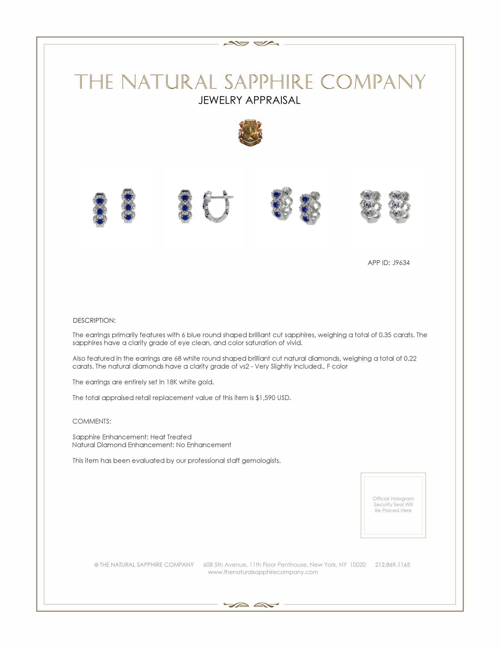 Inside you will find well organized reporting to include appraisal, identification and gem faceting grade reports. Special care literature on how to clean your sapphire or jewelry is included as well.