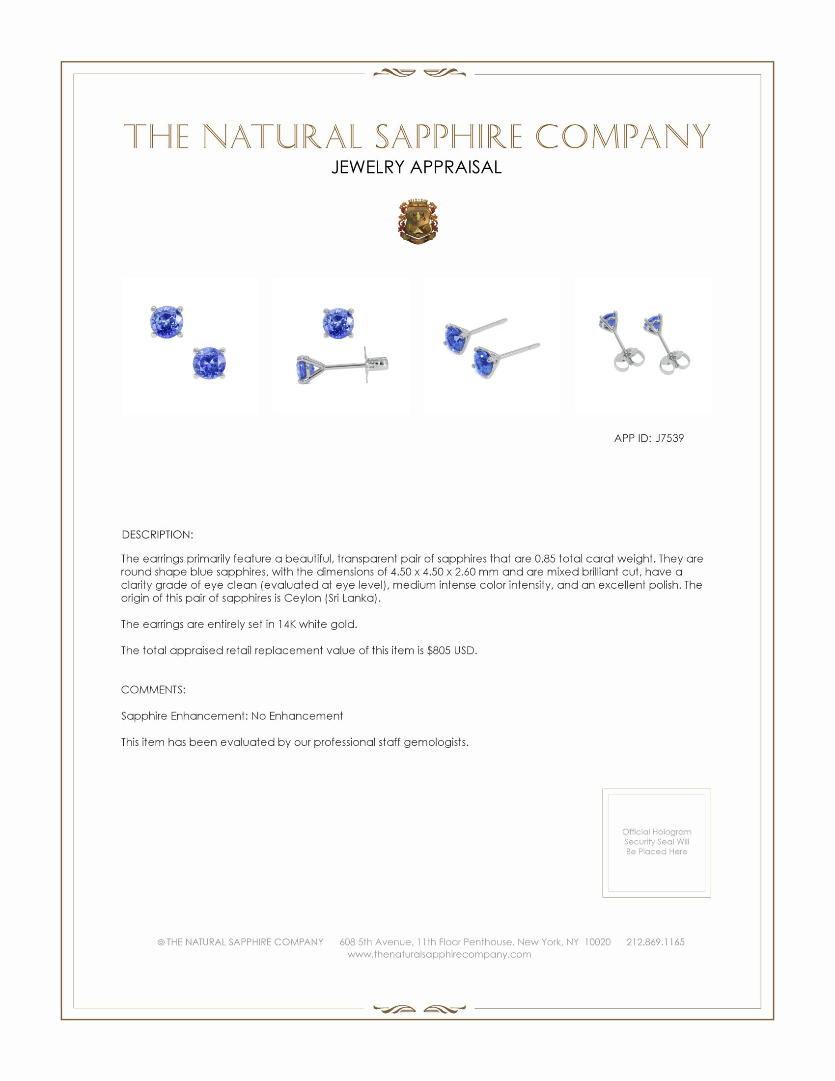 The overall design of these earrings presents a narrative of bespoke luxury, whispering tales of exclusivity to those fortunate enough to possess them. With dimensions of 4.50 x 4.50 x 2.60 mm, these Sapphires may be delicate in size, but they resonate with an undeniable presence. Their excellent polish ensures that every facet captures and reflects light with ethereal grace, a constant reminder of the refined elegance that is embodied within all creations of The Natural Sapphire Company.