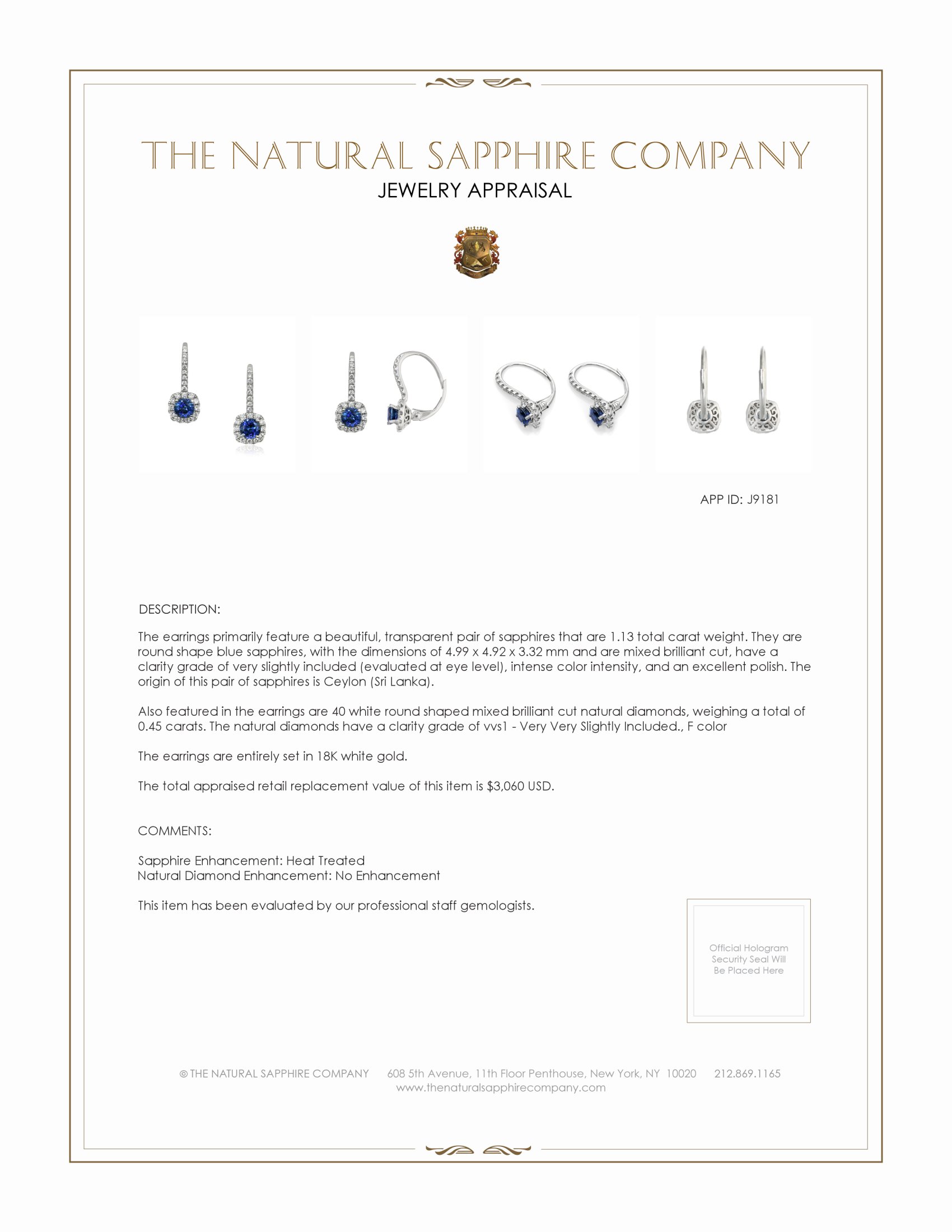 Inside you will find well organized reporting to include appraisal, identification and gem faceting grade reports. Special care literature on how to clean your sapphire or jewelry is included as well.