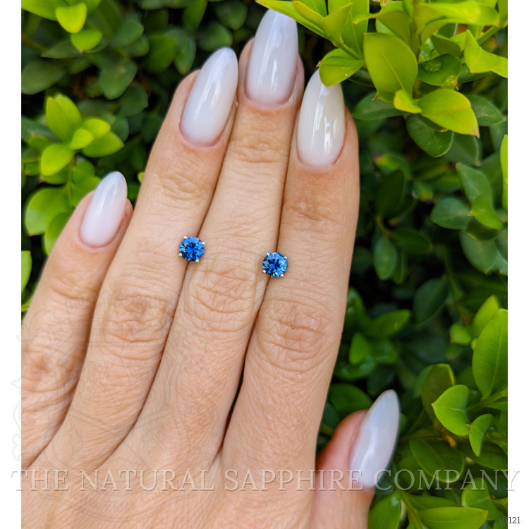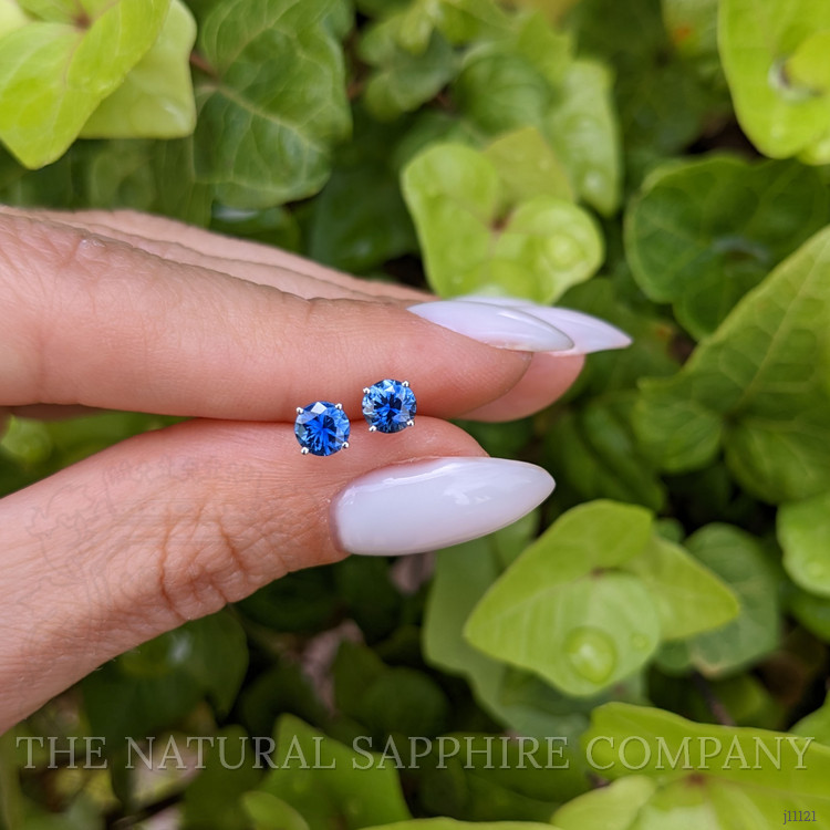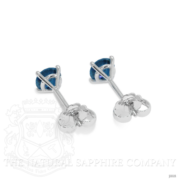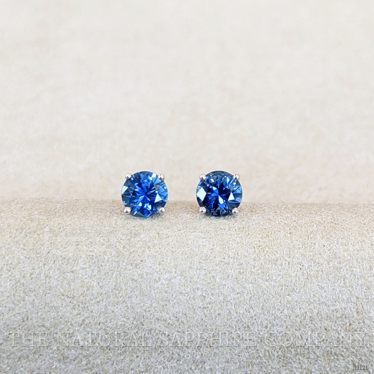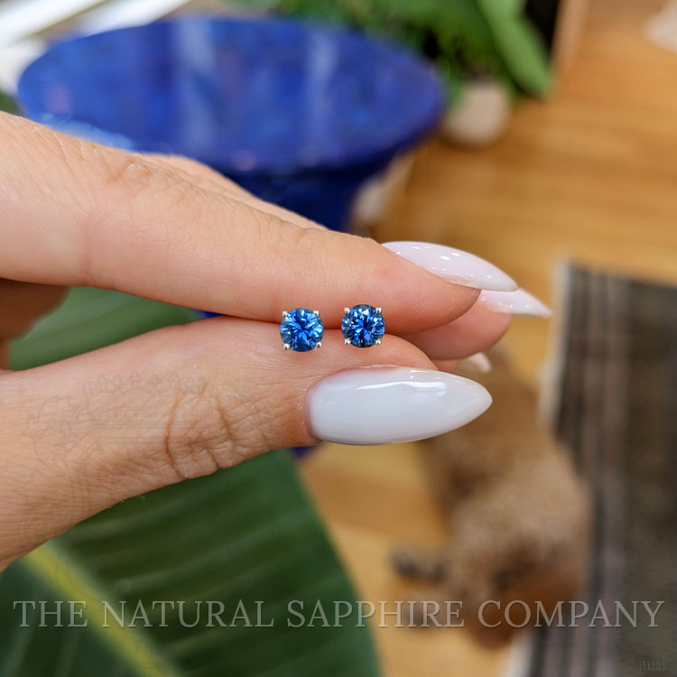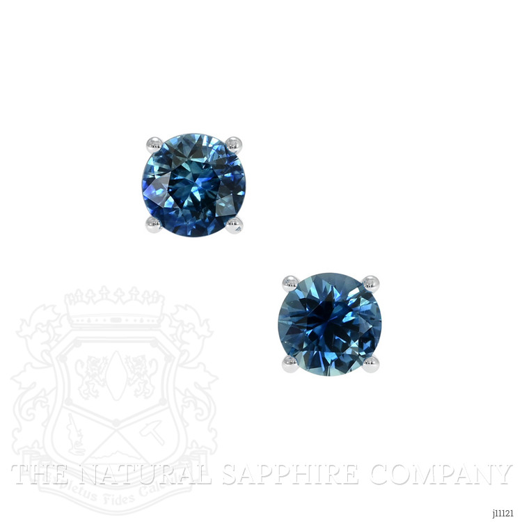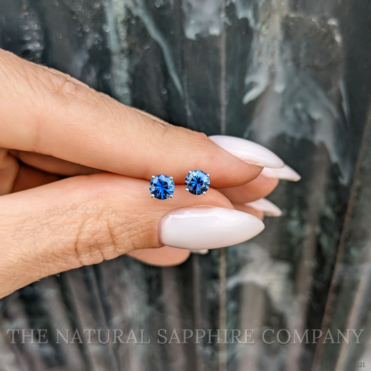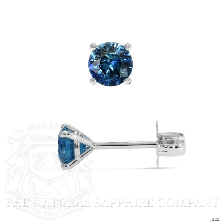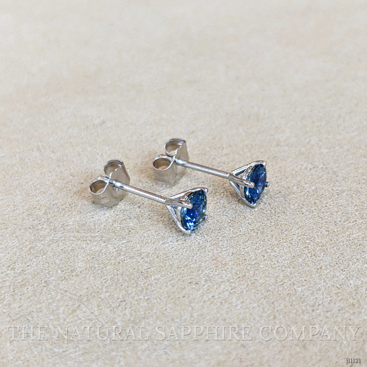 The earrings from The Natural Sapphire Company are a testament to exquisite craftsmanship and attention to detail that elevate them above classic pieces. At the heart of these stunning earrings are beautifully transparent sapphires weighing a total of 0.85 carats. These sapphires feature a mesmerizing greenish-blue hue, adding a layer of sophistication and distinction to the earrings. Their dimensions are precisely 4.50 x 4.50 x 0.00 mm, enhancing their round shape and symmetry, which is accentuated by an expert brilliant cut. This cut maximizes the play of light, ensuring that the sapphires exude a captivating brilliance with every beam of light they touch.
