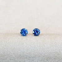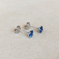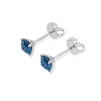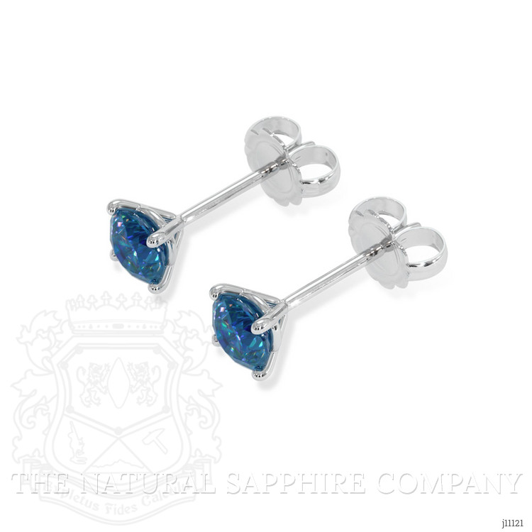 0.85 Ct.Tw. Greenish Blue Sapphire Studs Earrings, 14K White Gold