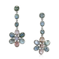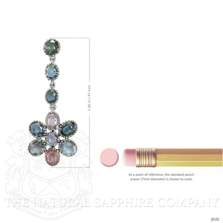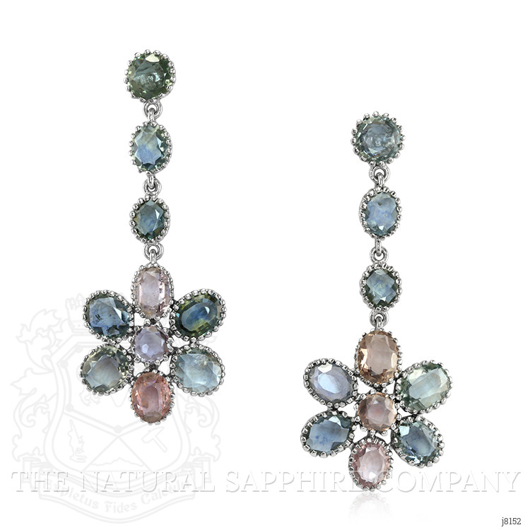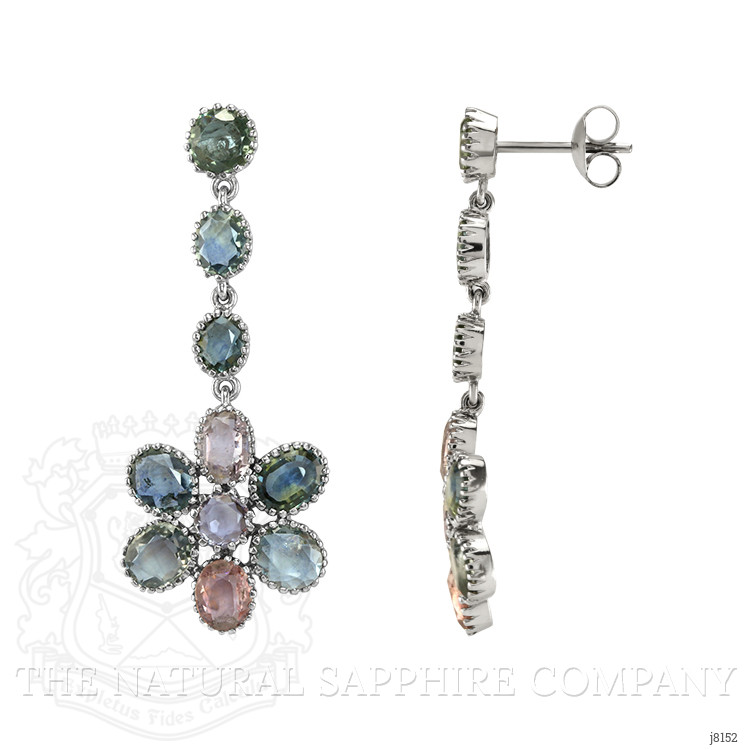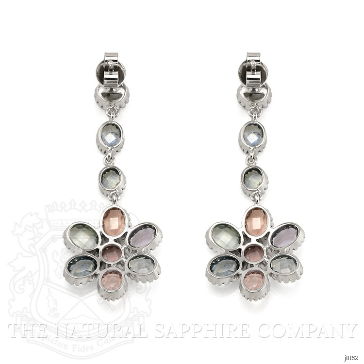 14.23 Ct.Tw. Multi Color Sapphire Antique Style Earrings, 14K White Gold