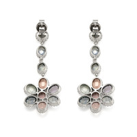 The design of these earrings highlights a blend of pastel hues, achieving a harmonious balance that speaks to the sophistication of its craftsmanship. Each gemstone undergoes a rigorous selection process to ensure it meets stringent color grade standards, thus resulting in an array of stones that wriggle with subtle nuances of blues, greens, and pinks. This thoughtful attention to detail is further showcased in the prong setting that secures each stone perfectly, allowing for maximal light reflection and brilliance. The precise metalwork of the white gold complements these gemstones, adding to the refined aesthetic and ensuring the earrings are as durable as they are beautiful.