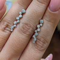 Every moment in life deserves a sparkle, a touch of elegance that stands the test of time. These earrings, crafted with meticulous care and unparalleled craftsmanship, aim to be that enduring sparkle. Set against the pristine sheen of 18K white gold, they dance with the light of 18 round shaped brilliant-cut diamonds, collectively weighing 0.36Ct. Each diamond, with dimensions of 1.75 x 1.75 x 0.80 mm, has been chosen for its radiant white color and VS2 clarity, ensuring every facet shines with brilliance and purity.