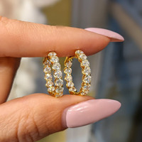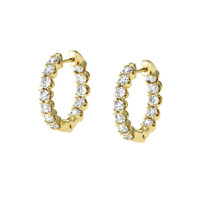 A moment of elegance awaits those who dare to drape themselves in pure luxury. Inspired by the night's canvas illuminated by twinkling stars, our meticulously crafted earrings bring the heavens a touch closer. Set in the warm embrace of 18K yellow gold, these jewels radiate the golden hues of a setting sun, forming a perfect backdrop for the celestial dance of diamonds. Twenty-four brilliantly cut, round-shaped diamonds, each a tiny universe of shimmering light, come together to weigh a substantial 2.20 carats. These ethereal stones, each measuring 2.75 L x 2.75 W x 2.20 H mm, reveal their tales of perfection with a VS2 clarity grade and an intense F color that captures the essence of pure, unfiltered light.
