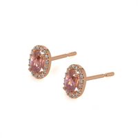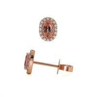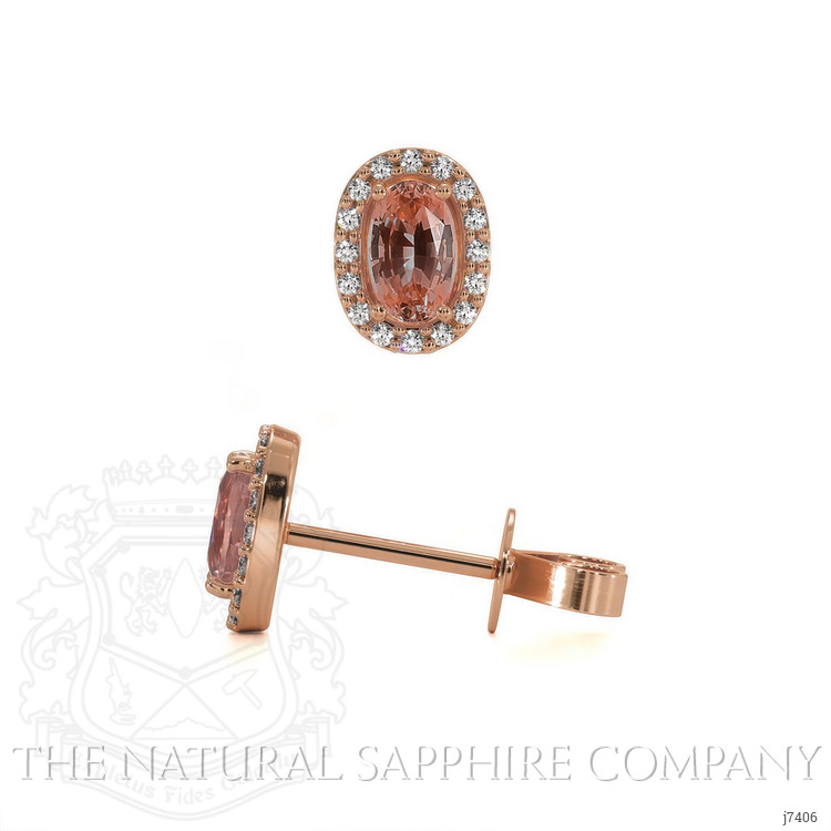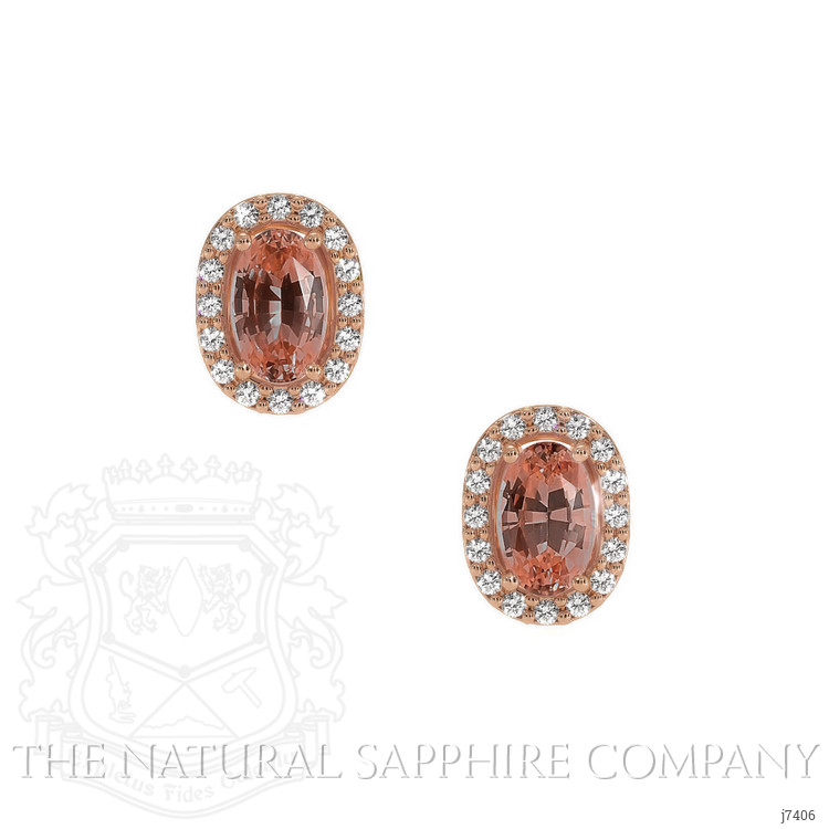 0.50 Ct.Tw. Padparadscha Sapphire and Natural Diamond Pave Earrings, 14K Rose Gold