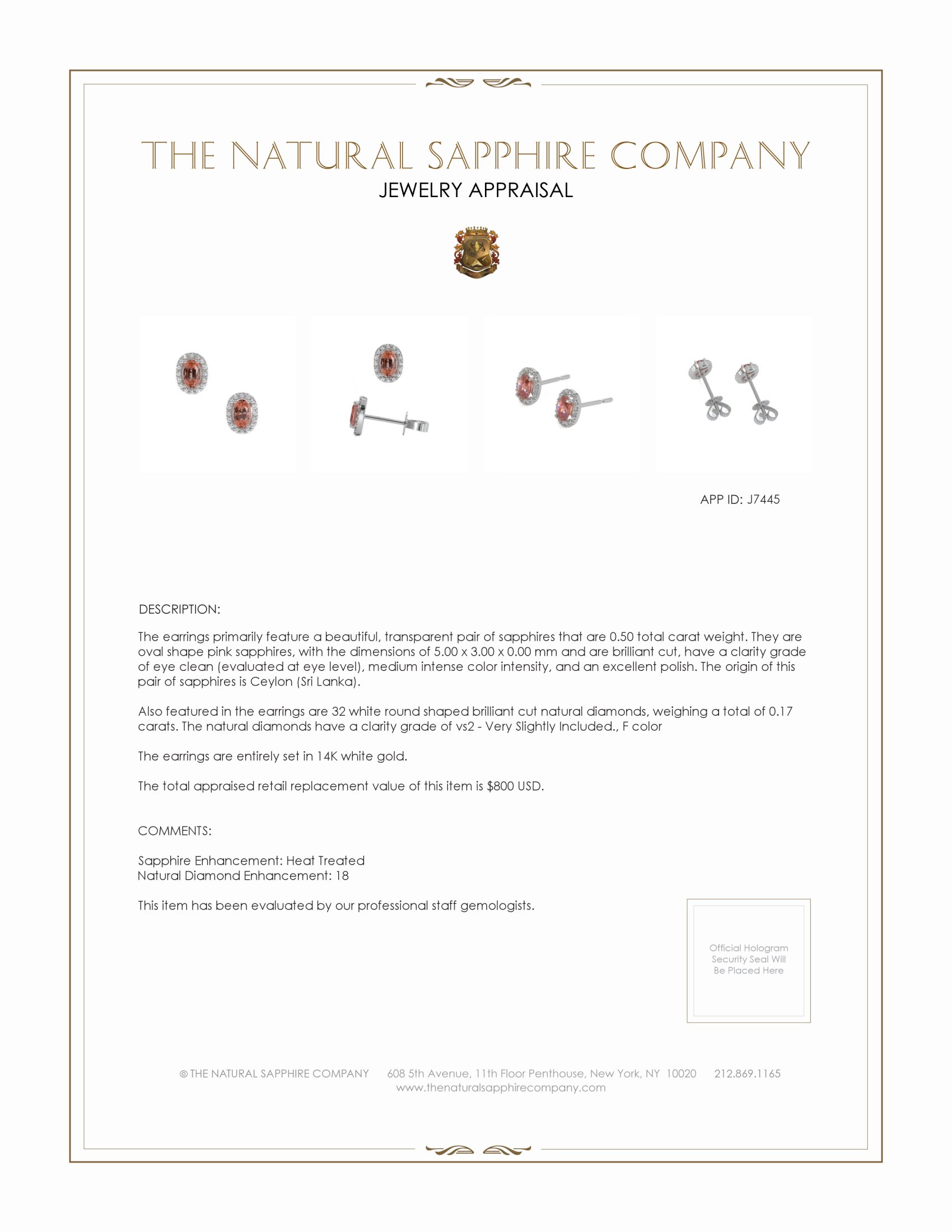 Introducing a breathtaking pair of earrings that effortlessly combines elegance with versatility, promising to be the crowning jewel of any collection. These stunning earrings showcase a transparent pair of oval-shaped Padparadscha Sapphires, weighing a total of 0.50 carats, sourced from the exotic lands of Ceylon, Sri Lanka. With dimensions of 5.00 x 3.00 x 1.95 mm and a mixed brilliant cut, these Sapphires draw in admirers with their medium intense color intensity and excellent polish, promising a mesmerizing glint with every turn of your head. Enhanced by precise heat treatment, the eye clean clarity of these gems ensures that their inner beauty is truly unmissable. At The Natural Sapphire Company, we believe in bringing the rare and the exquisite within reach, making these earrings the perfect solution for those seeking both classic sophistication and unique flair.