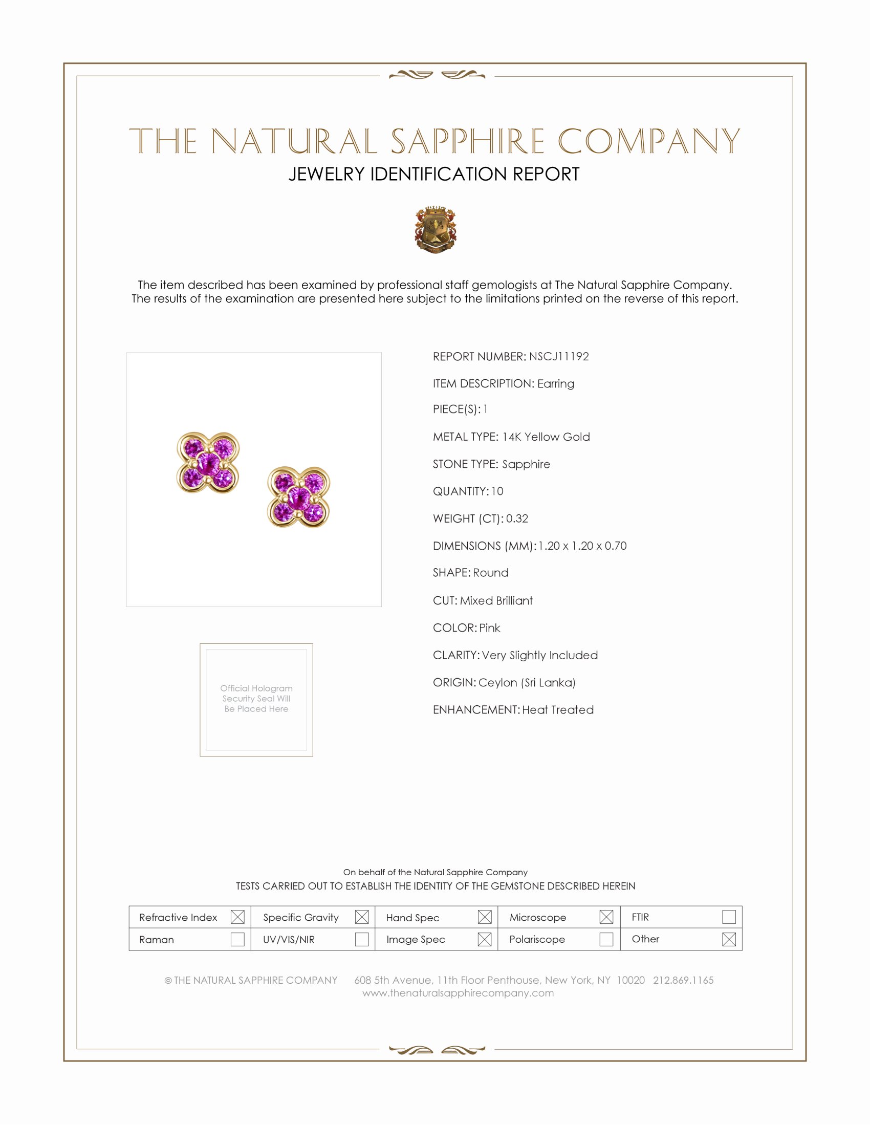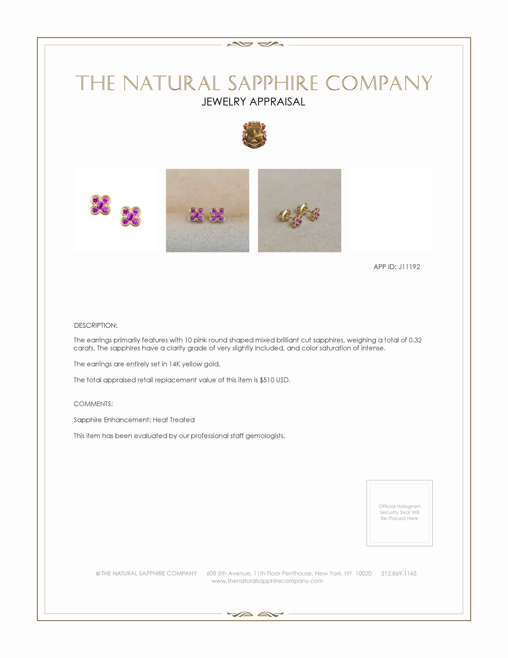 0.32 Ct.Tw. Pink Sapphire Studs Earrings, 14K Yellow Gold