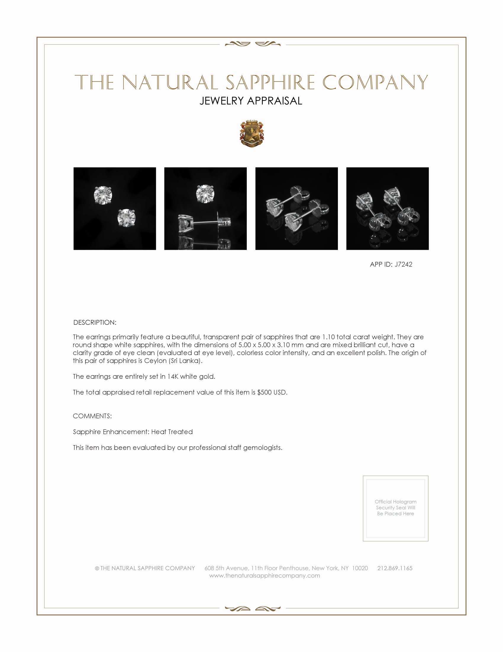 The mesmerizing beauty of these earrings doesn't stop at their impeccably cut stones. The mixed brilliant cut enhances the natural brilliance and fire of the sapphires, drawing the beholder's gaze with their radiant sparkle. Their colorless intensity provides a pristine beauty that rivals some of the most luxurious alternatives on the market. Moreover, these sapphires undergo a sensitive and essential heat treatment, bringing their natural properties to the forefront while maintaining the gem’s inherent quality and resilience. The origin of these remarkable stones from Ceylon, Sri Lanka, a region celebrated for its superior gemstones, adds an exotic charm and authenticity that elevates them above more standard offerings.