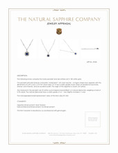 The following stones comprise the lovely pendant and are entirely set in 18K white gold. The pendant primarily features a beautiful, transparent 1.30 carat asscher - octagon shape blue sapphire with the dimensions of 6.09 x 6.02 x 2.75 mm and is step cut. It has a clarity grade of eye clean (evaluated at eye level), intense color intensity, and an excellent polish. The origin of this sapphire is Ceylon (Sri Lanka). Also featured in the pendant are 55 white round shaped mixed brilliant cut natural diamonds, weighing a total of 0.78 carats. The natural diamonds have a clarity grade of vs1 - Very Slightly Included., F color