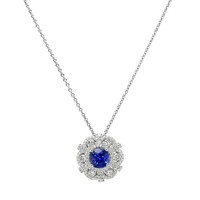 0.99 Ct. Blue Sapphire and Natural Diamond Halo Pendant, 18K White Gold
