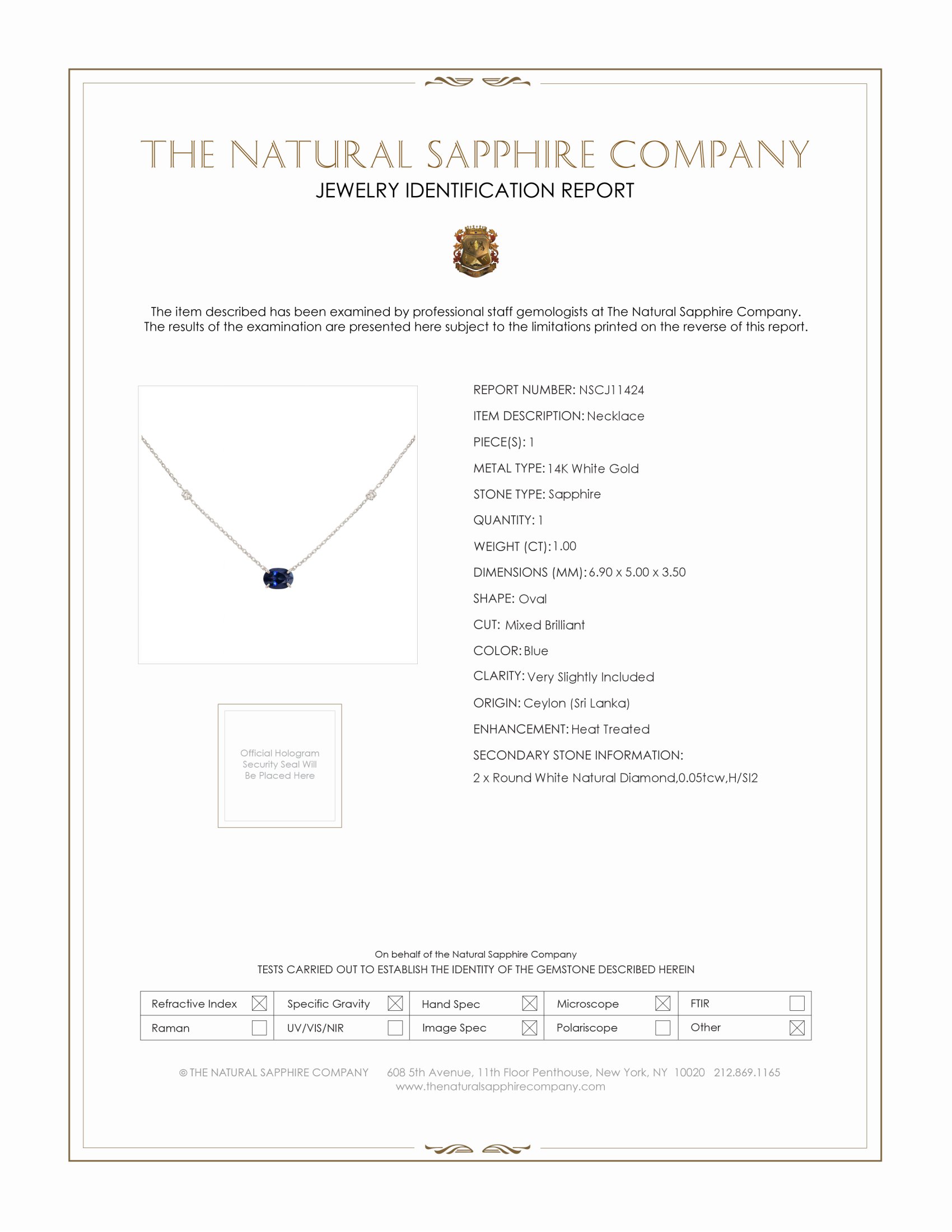 1.05 Ct. Blue Sapphire and Natural Diamond Accent Stones Necklace, 14K White Gold