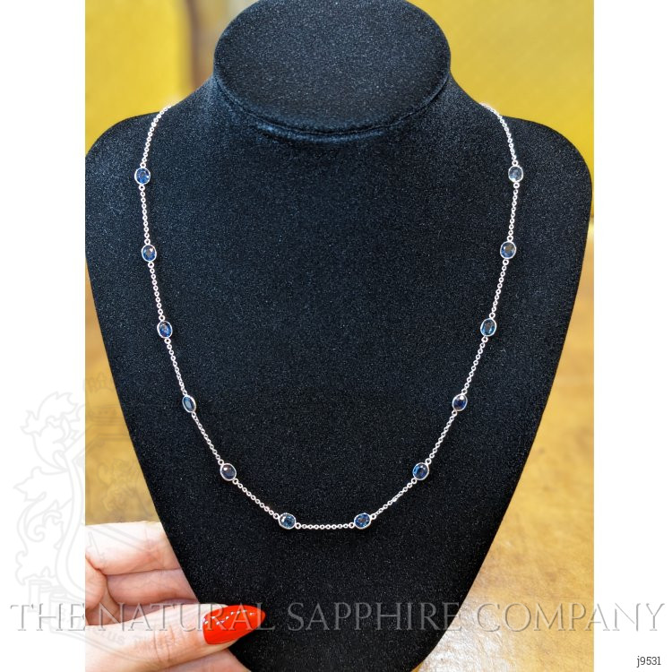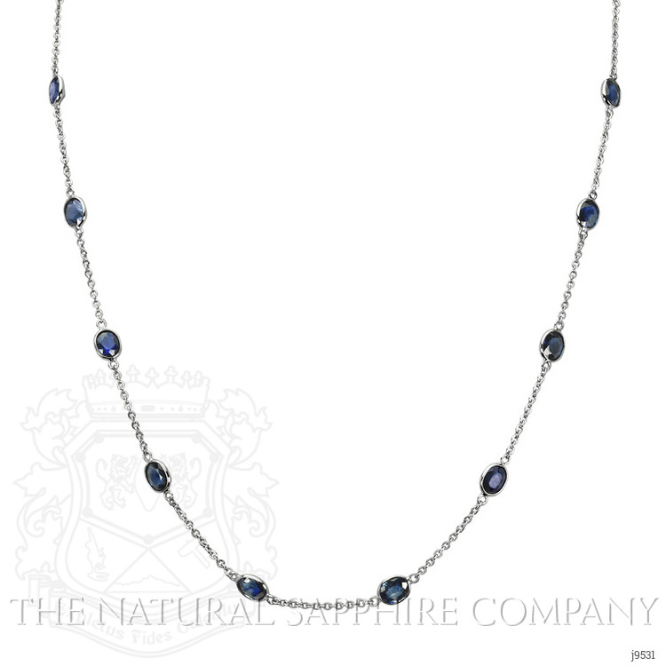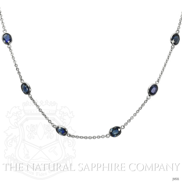 7.20 Ct. Blue Sapphire Bezel Necklace, 18K White Gold