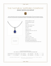 Adding to the pendant’s sophisticated allure are 23 white round brilliant cut Natural Diamonds, meticulously set to accentuate the Sapphire's opulence. These diamonds, collectively weighing approximately 0.13 carats, exhibit a remarkable clarity grade of VS2. This designation indicates very slight inclusions that are only visible under 10x magnification, ensuring that their sparkle remains unblemished to the naked eye. Their F color further underscores their exceptional quality, positioning them within the near-colorless range of the diamond color scale, which contributes to their dazzling brilliance and complements the vivid blue of the Sapphire. This interplay of pristine white diamonds against the deep blue gem creates a visual masterpiece, underscored by the skilled craftsmanship synonymous with The Natural Sapphire Company.