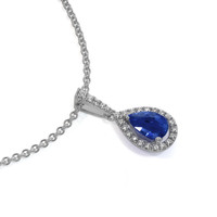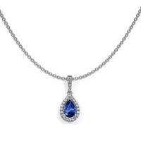 This exquisite pendant, meticulously crafted by The Natural Sapphire Company, serves as a dazzling testament to both nature's artistry and human craftsmanship. At its heart lies a stunning 0.75 carat pear-shaped blue sapphire, sourced from the storied mines of Ceylon, now Sri Lanka, a locale renowned for producing some of the world's finest sapphires. The stone is a masterpiece of natural splendor, displaying a vivid blue hue, which enhances its charm and allure. Its clarity is classified as eye clean, assuring that no imperfections are visible under normal viewing conditions, allowing the wearer to appreciate its pure beauty without distraction. Every facet of the sapphire has been skillfully cut using a mixed brilliant technique, ensuring maximum brilliance and light reflection, ending with an excellent polish that accentuates its vibrant color intensity.