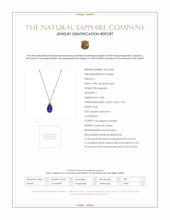 The following stones comprise the lovely pendant and are entirely set in 18K white gold. The pendant primarily features a beautiful, semi-transparent 10.80 carat pear shape blue sapphire with the dimensions of 16.00 x 10.00 x 7.50 mm and is double cabochon cut. It has a clarity grade of very slightly included (evaluated at eye level), vivid color intensity, and an excellent polish. The origin of this sapphire is Ceylon (Sri Lanka). Featured in the pendant are 9 white round shaped mixed brilliant cut natural diamonds, weighing a total of 0.90 carats. The natural diamonds have a clarity grade of vs1 - Very Slightly Included., F color Featured in the pendant are 2 white marquise shaped brilliant cut natural diamonds, weighing a total of 0.08 carats. The natural diamonds have a clarity grade of vs2 - Very Slightly Included., F color Also featured in the pendant are 30 white round shaped brilliant cut natural diamonds, weighing a total of 0.15 carats. The natural diamonds have a clarity grade of vs2 - Very Slightly Included., F color