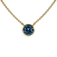 0.50 Ct. Bluish Green Sapphire Bezel Necklace, 14K Yellow Gold