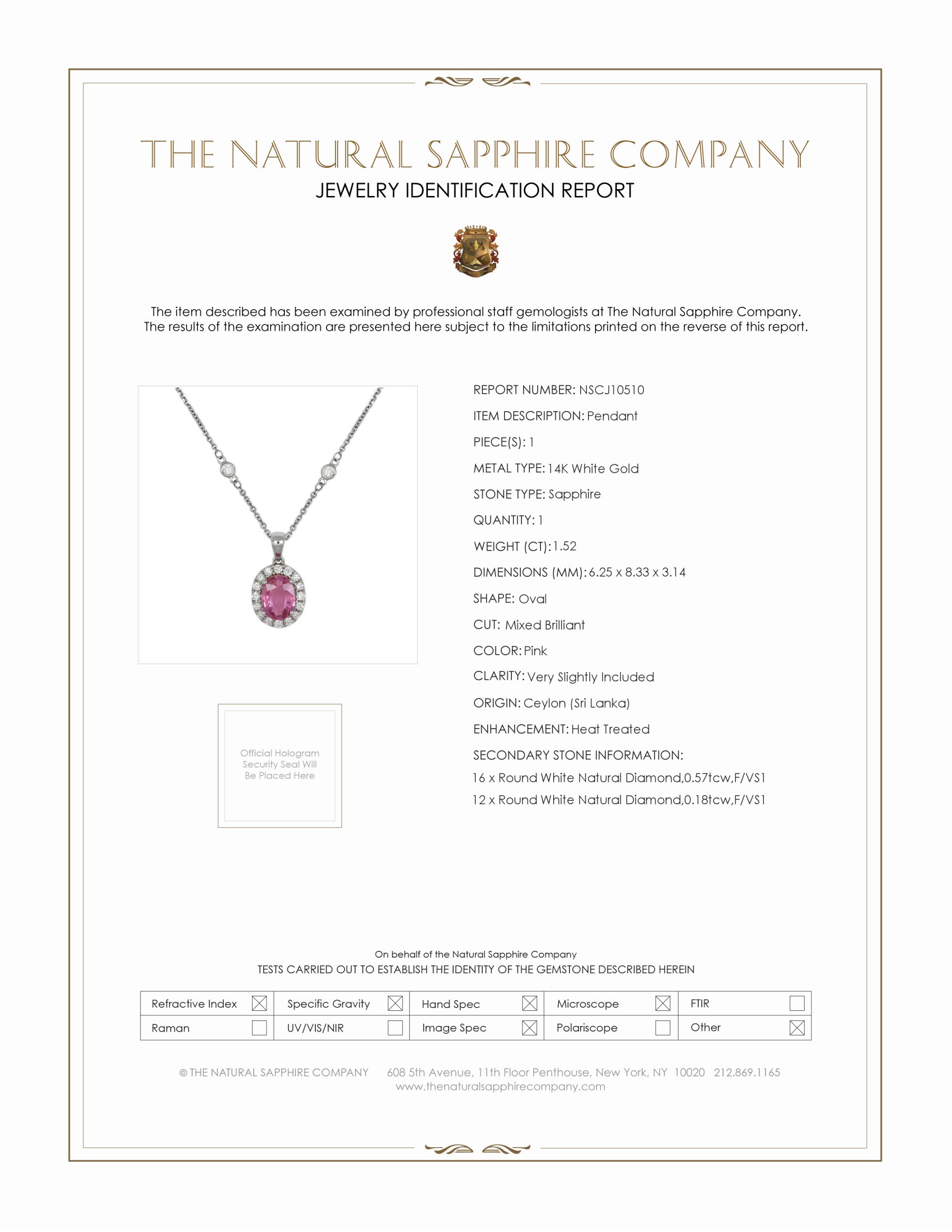1.52 Ct. Pink Sapphire and Natural Diamond Halo Pendant, 14K White Gold
