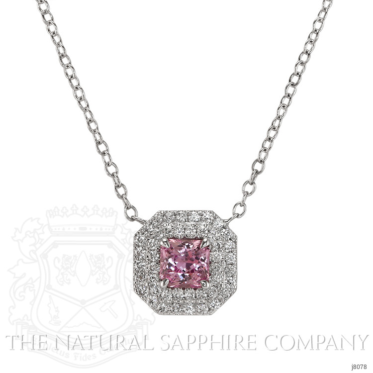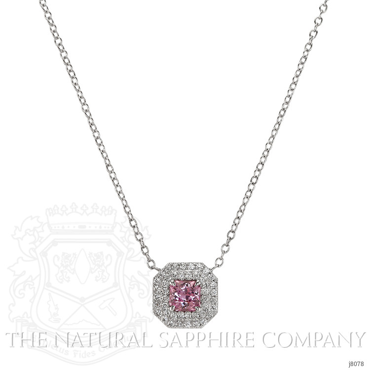 Imagine the delight of adorning your neck with this enchanting necklace, where a stunning pink sapphire takes center stage. Known for its symbolism of love, sincerity, and trust, this pink sapphire can speak a thousand sentiments without saying a word. Encircled by a halo of sparkling diamonds, each handcrafted with care to enhance the sapphire's irresistible allure, the design embodies both timeless grace and modern flair. This harmonious blend of stones transforms this necklace into a perfect gift, whether you are expressing romantic declarations or celebrating life's personal triumphs.