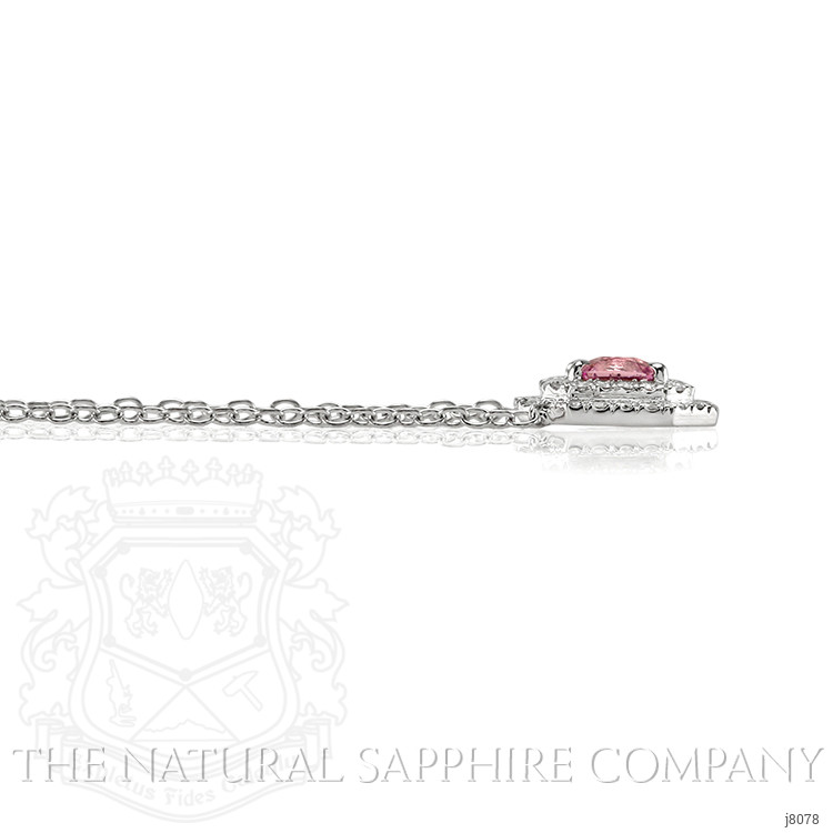 0.79 Ct. Purplish Pink Sapphire and Natural Diamond Pave Necklace, 14K White Gold