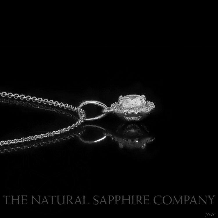 This exquisite pendant by The Natural Sapphire Company artfully showcases the captivating allure of gemstones cherished since ancient times. At the heart of this timeless piece rests a striking 0.30 carat round white sapphire. With origins tracing back to the storied lands of Ceylon, now known as Sri Lanka, this sapphire carries with it a legacy steeped in history and tradition. The stone's dimensions of 4.00 x 4.00 x 2.80 mm are framed meticulously to capture the epitome of elegance. Set in 14K white gold, the mixed brilliant cut of the sapphire enhances its natural brilliance, allowing it to capture light in an enchanting dance of pure colorless gleam. Notably, the clarity of this eye-clean stone ensures an uninterrupted view into its crystalline depths, a testament to both rarity and refinement.