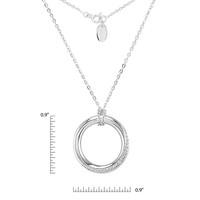 A lovely twisted circle pave necklace held in place by an 18" sterling silver chain.