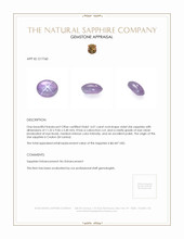 Exhibiting a medium intense violet hue, this star sapphire's color intensity pairs beautifully with an excellent polish, highlighting its natural sheen and elegance. Originating from the renowned gem region of Ceylon, Sri Lanka, it stands out for its exceptional quality. In the realm of gemstones, it is a testament to the allure and scarcity of such vividly colored and well-crafted sapphires.