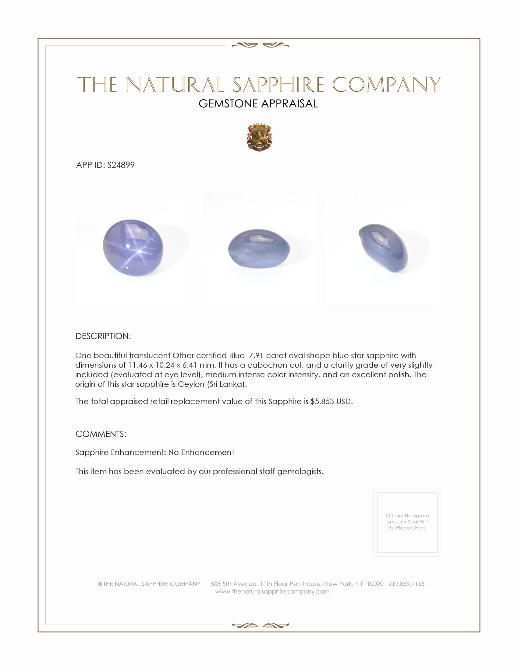 Beyond its aesthetic appeal, this star sapphire represents a profound investment opportunity. As colored gemstones continue to rise in desirability and value, particularly those with such storied origins and captivating features, the potential for future appreciation is significant. The demand for scarce, high-quality sapphires from Ceylon alone assures that their worth endures and even multiplies over time. At The Natural Sapphire Company, we are proud to offer you not only a piece of timeless beauty but also a wise investment that safeguards wealth and legacy. Acquiring such a gemstone assures you of both artistic satisfaction and financial foresight, securing a cherished place in history and serving as a valuable asset for generations to come.