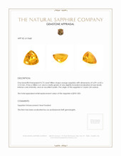 Whether adorning a bespoke piece of jewelry or maintained as part of a comprehensive gemstone portfolio, this orange sapphire offers versatility and lasting appeal. Its delightful trillion shape and vibrant hue make it an exquisite focal point for any setting or occasion. Embrace the elegance and history encapsulated in this gemstone, and allow The Natural Sapphire Company to be your trusted partner in acquiring a piece of nature's timeless beauty.