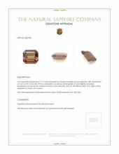 This extraordinary, transparent 1.77 carat orangish brown sapphire is a rare find from Ceylon Sri Lanka, presented in a refined emerald cut that measures 7.57 by 6.74 by 3.54 mm, with an excellent polish that gives every facet a crisp, mirror like finish. Its medium intense color radiates warm coppery and amber tones that shift subtly depending on the light, and its clarity is graded as very slightly included when evaluated at eye level, leaving the stone visually clean and luminous to the wearer. This sapphire is completely natural, with no enhancement, which elevates its desirability among collectors and connoisseurs who prize untouched, ethically sourced gemstones. Offered exclusively through The Natural Sapphire Company, this gem is both intimate and imposing, a discreet statement for someone who appreciates uncommon color and genuine origin, a piece meant for a small circle of owners who seek distinction rather than conformity.