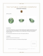 The sapphire's color intensity is classified as medium intense, presenting a delightful infusion of yellowish and green hues. This coloration offers a striking visual impact that remains pleasing to the eye, ensuring the sapphire can be admired for its dynamic yet harmonious palette. The clarity grade of slightly included, evaluated at eye level, indicates minor inclusions that do not detract from the gem's visual charm. Rather, these natural characteristics contribute to its individuality and draw attention to the geological journey it has undergone from the depths of the earth to its current state. The inclusions tell a story, adding depth and character to the jewel, enhancing the overall intrigue surrounding its origins.
