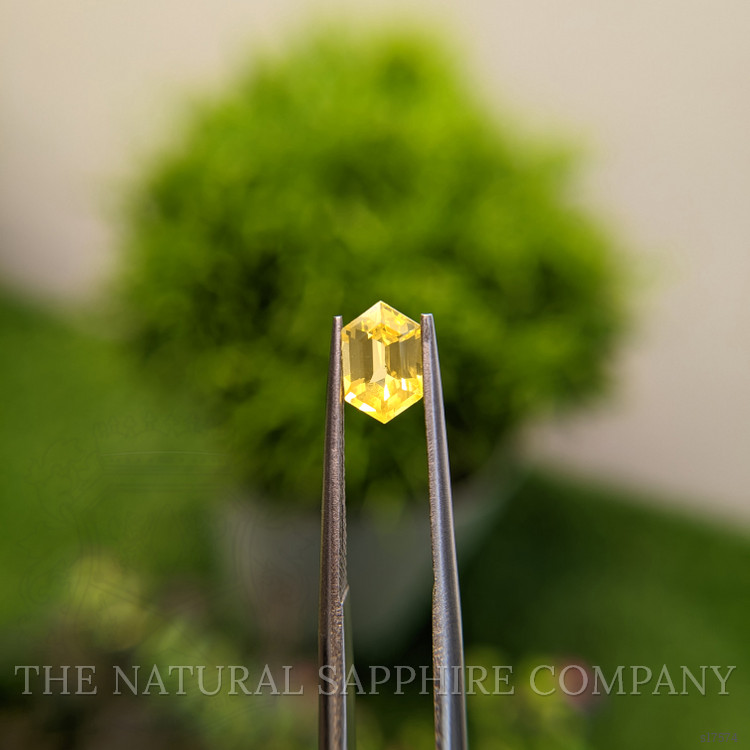 The 1.27 carat fancy shape yellow sapphire presented by The Natural Sapphire Company exemplifies the epitome of artistic gem cutting and natural splendor. Originating from Tanzania, this exquisite sapphire possesses dimensions of 7.76 x 4.96 x 3.74 mm. Its unusual yet captivating fancy shape, coupled with a masterfully executed step cut, not only accentuates its sizable appearance but also enhances the interplay of light within the stone. This meticulous faceting style is crucial for showcasing the gem's optimal brilliance and ensures that the light cascades smoothly across its surfaces, offering a mesmerizing visual experience.