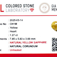 Originating from Ceylon, also known as Sri Lanka, this gem is a part of a storied heritage of quality and craftsmanship. Sri Lankan sapphires are renowned worldwide for their superior quality and vibrant hues, making them highly sought after among connoisseurs and collectors. The medium intense color of this yellow sapphire reflects a richness that is rare, adding a luxurious touch to the overall appearance. One of the standout features of this sapphire is its natural state, with no enhancements. This means that the vivid color and clarity you see are entirely natural, offering assurance of authenticity and intrinsic value, a crucial aspect for the educated buyer.