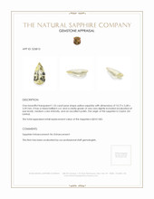 The rich history associated with sapphires is a testament to their revered status in the ancient world. For centuries, these stones were symbols of wisdom and strength, held in high esteem by kings and queens, mystics and poets alike. Their vibrant colors, especially the warm golden hue of this delicate yellow sapphire, are as compelling today as they were to those who cherished them long ago. This pear-shaped wonder, with its dimensions that read like nature's poem, has been sculpted to reveal a sublime dance of light and shadow. Adorn yourself or a loved one with this piece from The Natural Sapphire Company, and tap into the profound joy that these stones can bestow. Imagine gifting it on a momentous occasion, knowing well that it does not merely beautify the beholder but is a bearer of age-old lore and an emblem of a shared human longing for splendor.