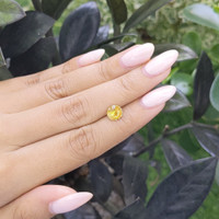 This transparent yellow sapphire weighs 1.61 carat and presents a round shape with precise dimensions of 7.00 x 7.08 x 4.25 mm. The gem exhibits an intense color intensity that is evenly distributed across the table and crown, and it has been heat treated to stabilize and deepen the hue. Evaluated at eye level, the clarity is slightly included, which means small internal features are present but do not materially compromise the stone s overall transparency or its visual presence. The cut is a mixed brilliant, and the polish is excellent, producing a clean surface finish that supports strong light return. At The Natural Sapphire Company we document both the physical measurements and the enhancements in order to provide complete and transparent information about this specimen.