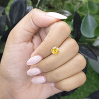 Clarity and polish work together with the cut to determine the perceived purity of light transmission, and in this sapphire the slightly included clarity presents as fine needle like or pinpoint features that remain unobtrusive at normal viewing distances. These internal features can in some cases contribute to a softening of direct reflections, adding a delicate texture to the gem s scintillation rather than introducing distracting cloudiness. The excellent polish eliminates surface diffusion that would otherwise scatter light and reduce contrast, so facet junctions appear crisp and reflective. The heat treatment applied to this stone is an established, stable enhancement that intensifies the yellow hue by modifying trace element distribution and improving visual uniformity, while retaining the gem s structural integrity and refractive behavior.