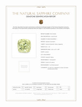 Discover the epitome of elegance and ethical luxury with this exquisite 1.65 carat cushion-shaped greenish-yellow sapphire from The Natural Sapphire Company. This sapphire, with its dimensions of 6.46 x 6.47 x 4.89 mm, sets itself apart with a rare mix of brilliance and timeless appeal. The mixed brilliant cut enhances its transparency, allowing light to dance across its surface and highlighting the medium intense color intensity that captivates and enchants the beholder. Its very slightly included clarity, evaluated at eye level, ensures that the natural beauty of the stone is preserved while maintaining an accessible allure.