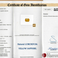 With its cushion shape and mixed brilliant cut, this sapphire showcases a play of light worthy of its storied past. The excellent polish ensures that its beauty is revealed with unparalleled clarity, while the medium color intensity allows the gem to evoke the natural warmth and splendor of the golden sunrise, a true reflection of the sun-kissed landscapes of its Ceylonese origin. Despite its very slightly included clarity grade, evaluated at eye level, this gemstone maintains a pure and alluring visage, demonstrating the ancient belief that natural inclusions are the unique fingerprints of each gem. These subtleties not only affirm the genuineness of this precious stone but also enrich its storied lineage.